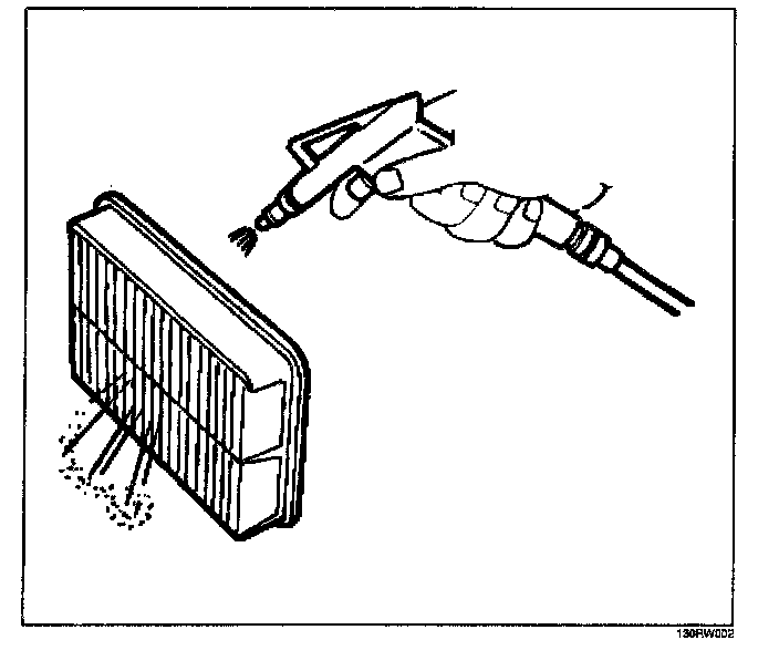 Tap the air cleaner filter gently so as not to damage the paper filter, or clean the element by blowing with compressed air of about 490 kPa (71 psi) from the clean side if it is extremely dirty.