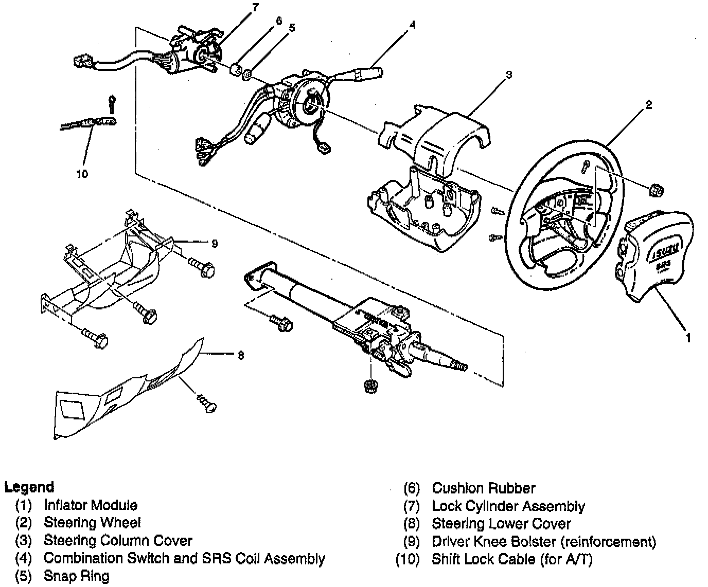NOTE: The SRS coil is a part of the combination switch assembly, which can not be replaced separately. Therefore, be sure not to remove the SRS coil from the combination switch assembly.
