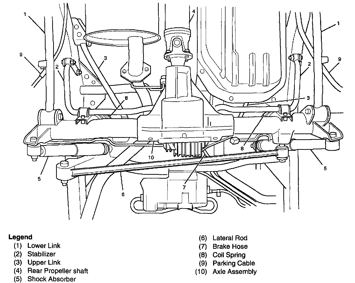 7. Install the lower link fixing bolt and nut to the axle housing.