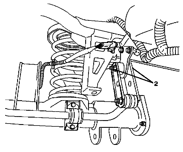 11. Remove the stabilizer linkage mounting bolts and nuts (2) from the frame side.