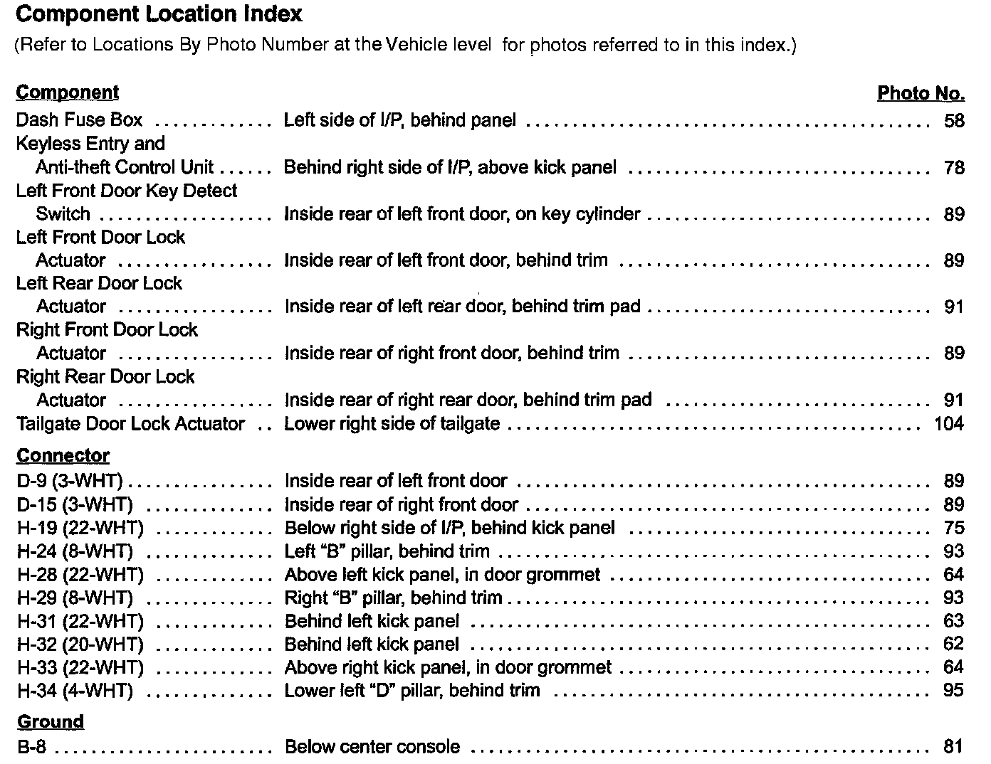 Component Location Index