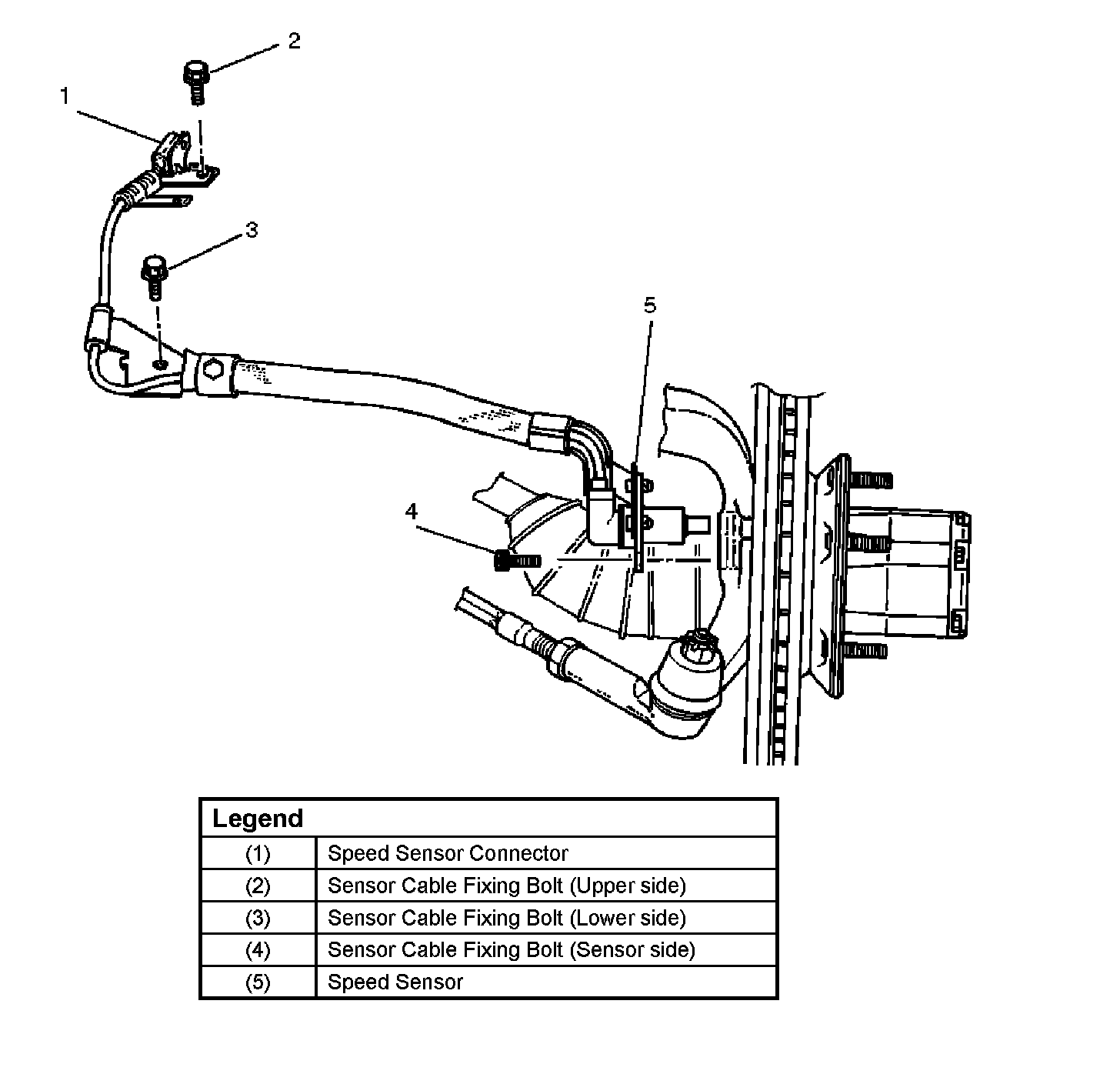 4. Install speed sensor cable fixing bolt (Upper side) and tighten the fixing bolt to the specified torque.