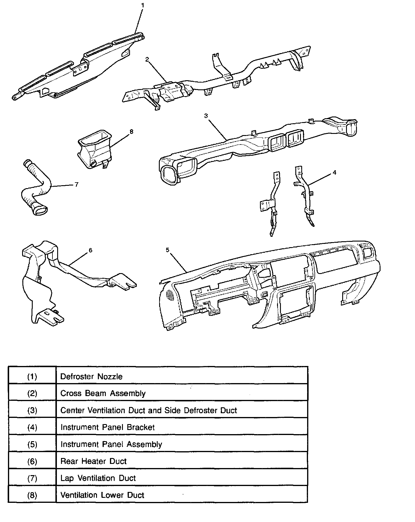 Rear Heater Duct, Defroster Nozzle and Ventilation Duct: