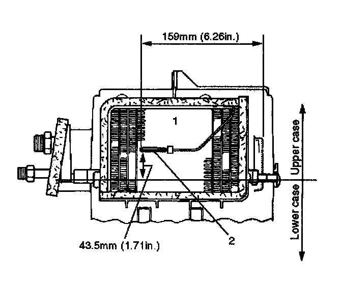 3. When installing the new evaporator core, install the thermo sensor (2) to the evaporator core (1) specified position with the clip in the illustration.