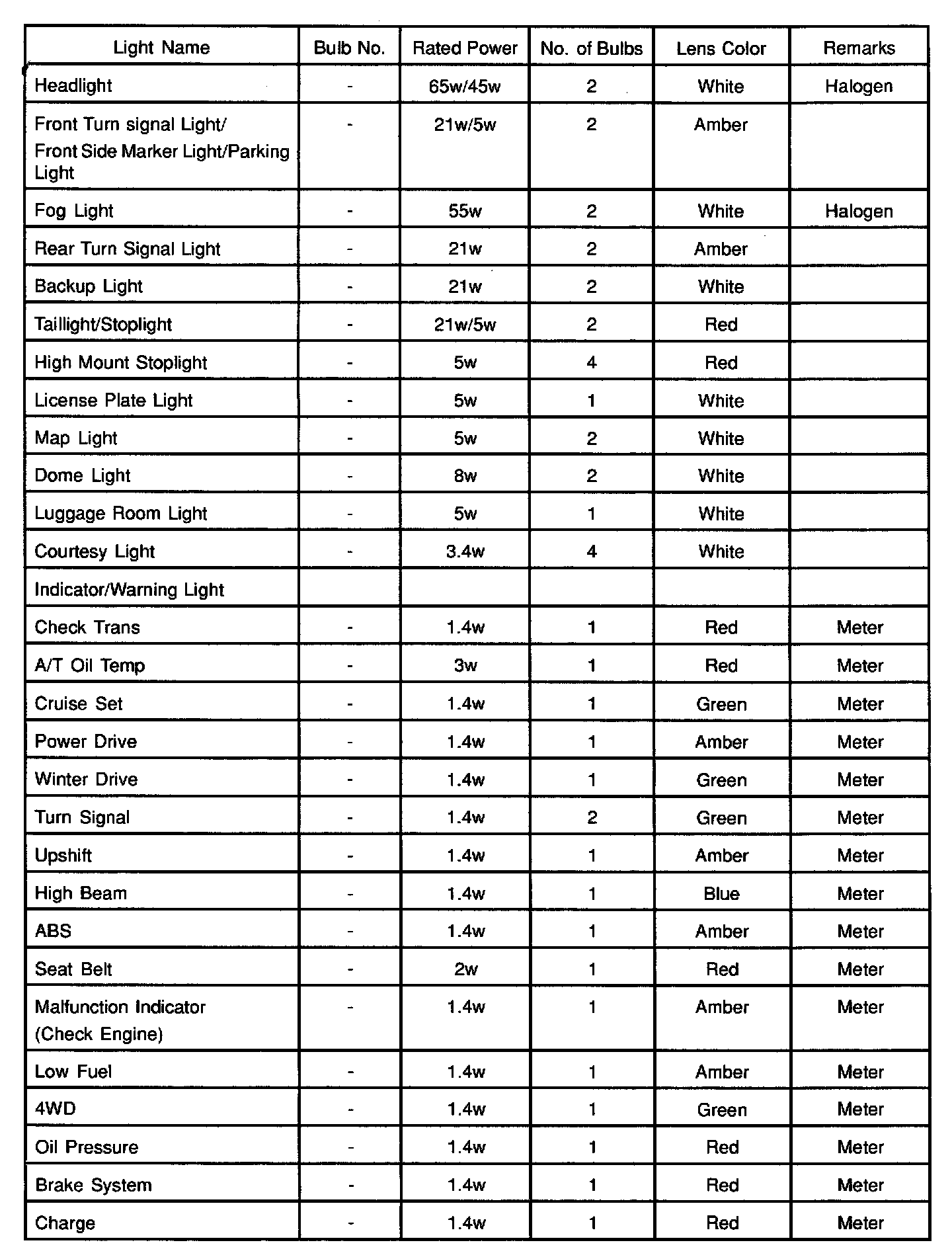 Lighting and Horns: Specifications