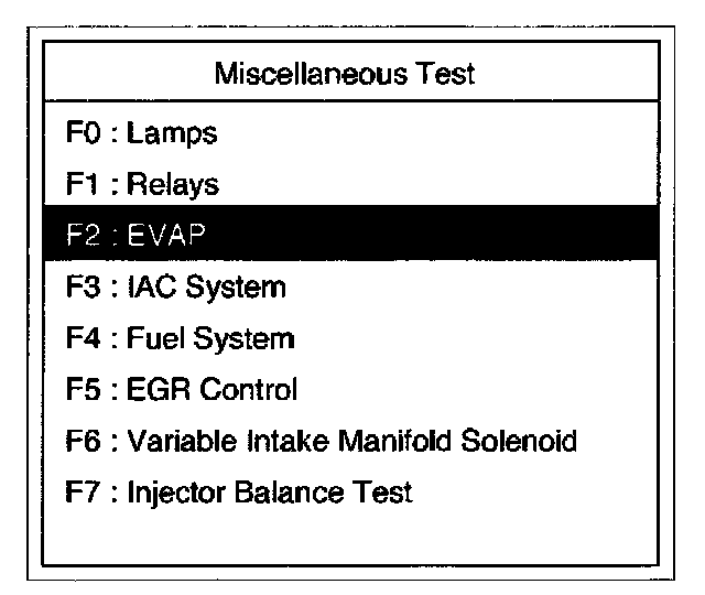 4. Select F2:EVAP Test in the Miscellaneous Test.