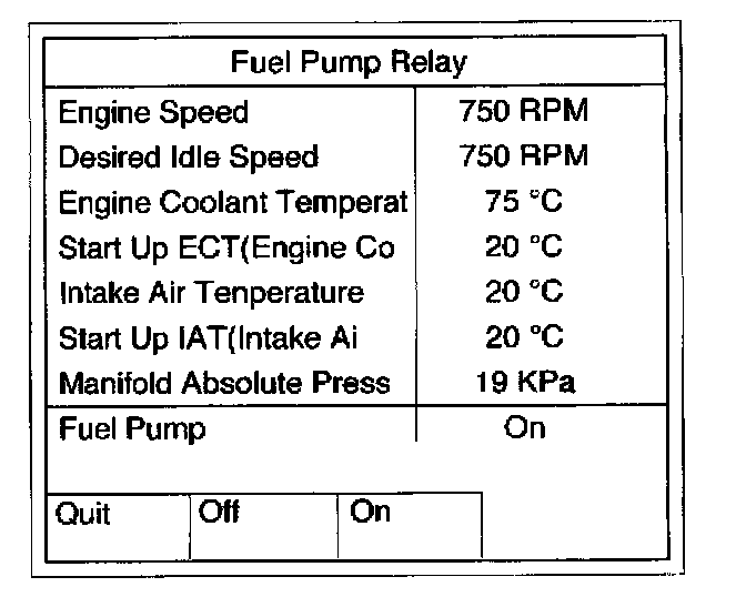 This test is conducted to check Fuel Pump Relay and A/C Clutch for proper operation.Tech 2 must be used for this test.
