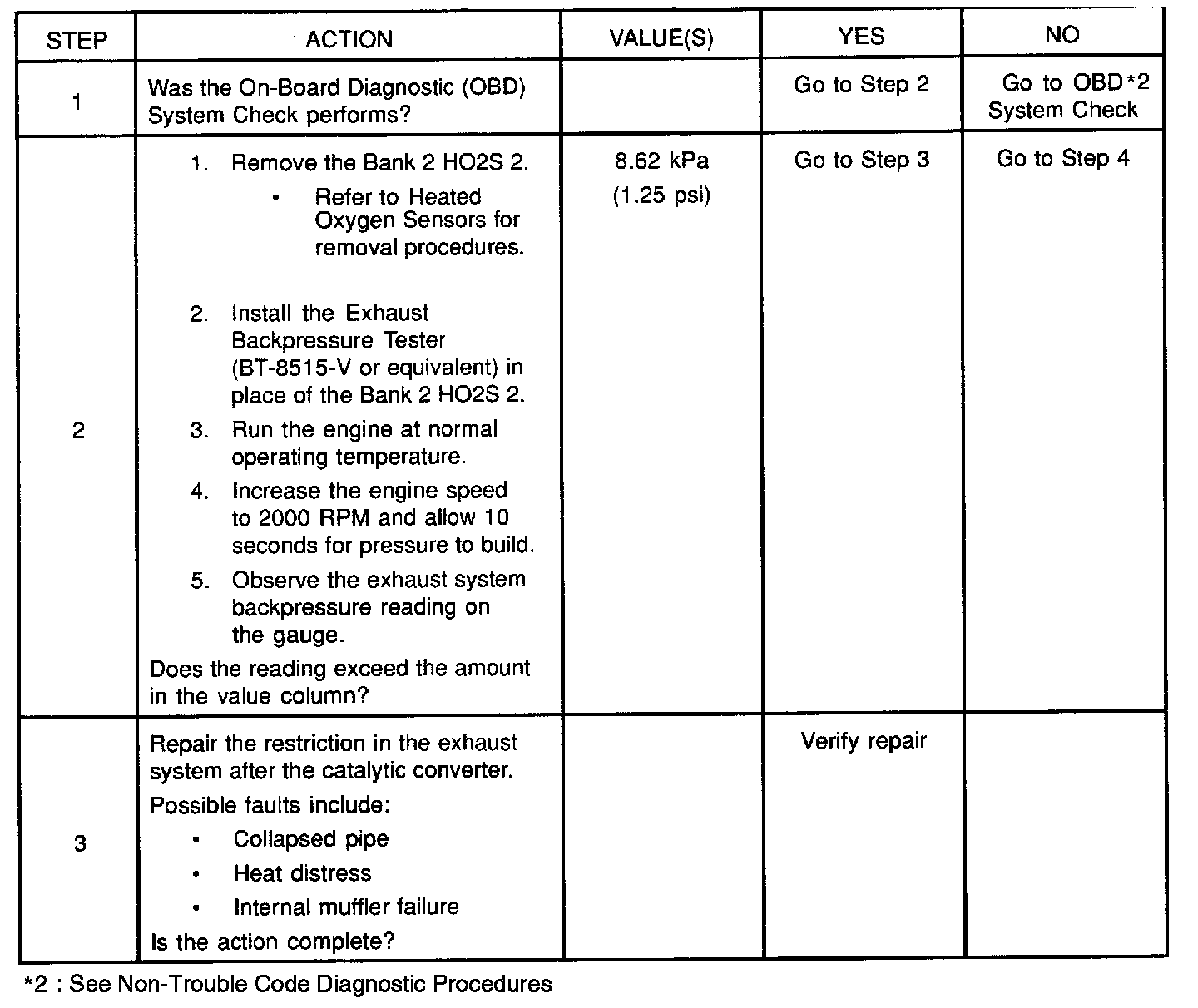 Bank 2 Restricted Exhaust System Check