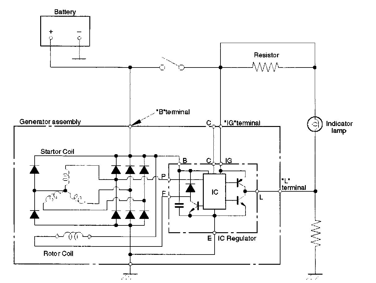 Disconnect wiring connector from generator, and ground the terminal L on connector side.