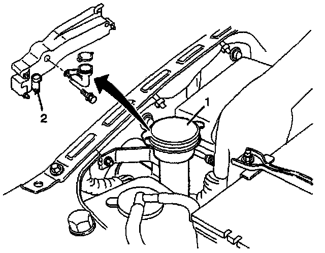 4. Disconnect the windshield washer motor connector and remove the washer tank (1).