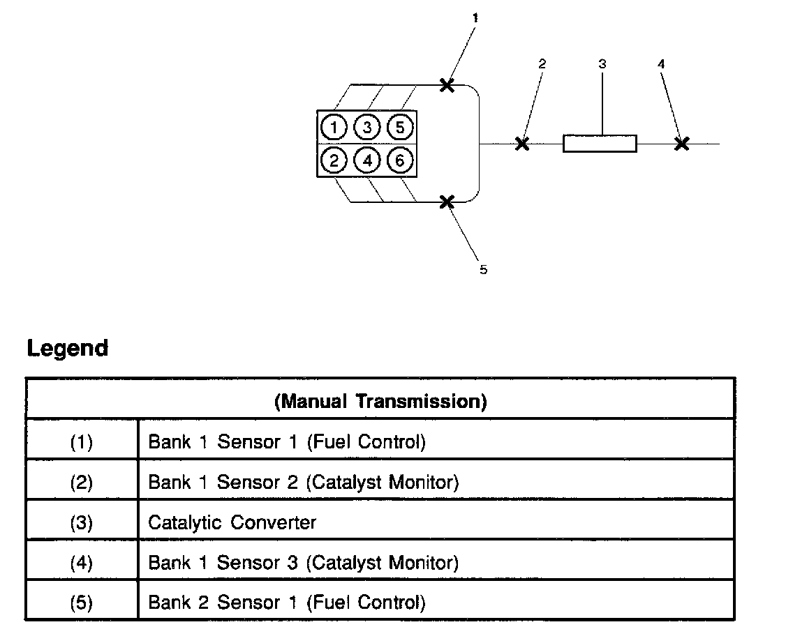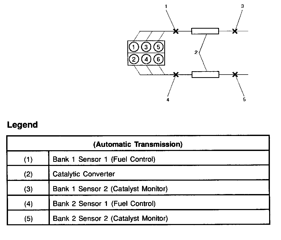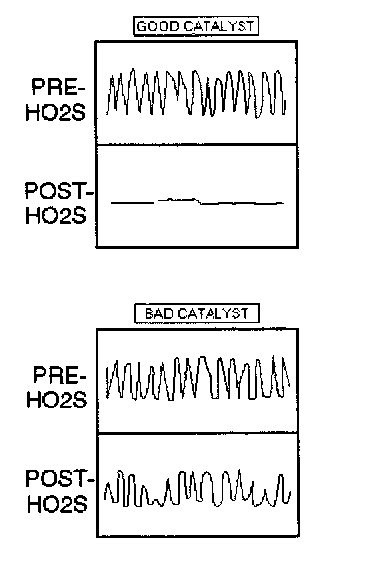 Three-way catalytic converters are used to control emissions of hydrocarbons (HC), carbon monoxide (CO), and oxides of nitrogen (NOx). The catalyst within the converters promotes a chemical reaction. This reaction oxidizes the HC and CO present in the exhaust gas and converts them into harmless water vapor and carbon dioxide. The catalyst also reduces NOx by converting it to nitrogen. The PCM can monitor this process using the Bank 1 HO2S 2 and the Bank 2 HO2S 2 heated oxygen sensors. The Bank 1 HO2S 1 and the Bank 2 HO2S 1 sensors produce an output signal which indicates the amount of oxygen present in the exhaust gas entering the three-way catalytic converter. The Bank 1 HO2S 2 and the Bank 2 HO2S 2 sensors produce an output signal which indicates the oxygen storage capacity of the catalyst. This indicates the catalyst's ability to efficiently convert exhaust gases. If the catalyst is operating efficiently, the Bank 1 HO2S 1 and the Bank 2 HO2S 1 signals will be more active than the signals produced by the Bank 1 HO2S 2 and the Bank 2 HO2S 2 sensors.