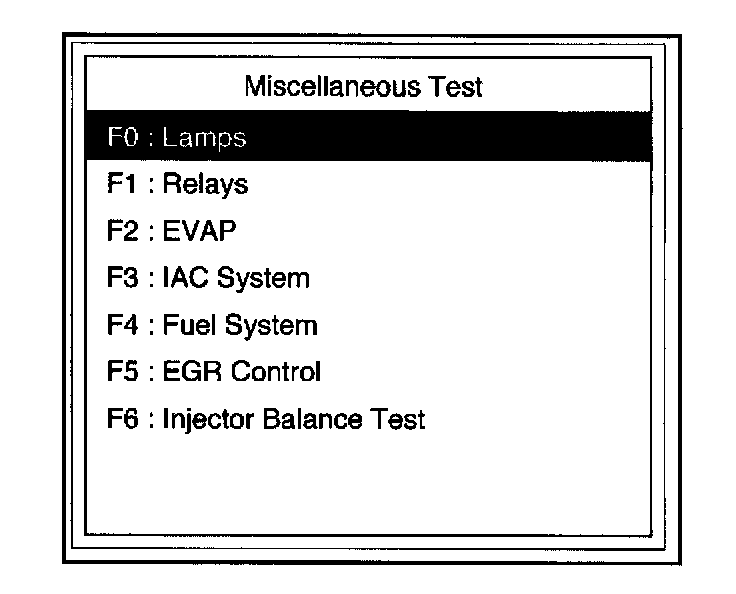 4. Select F0 : Lamps Test in the Miscellaneous Test.
