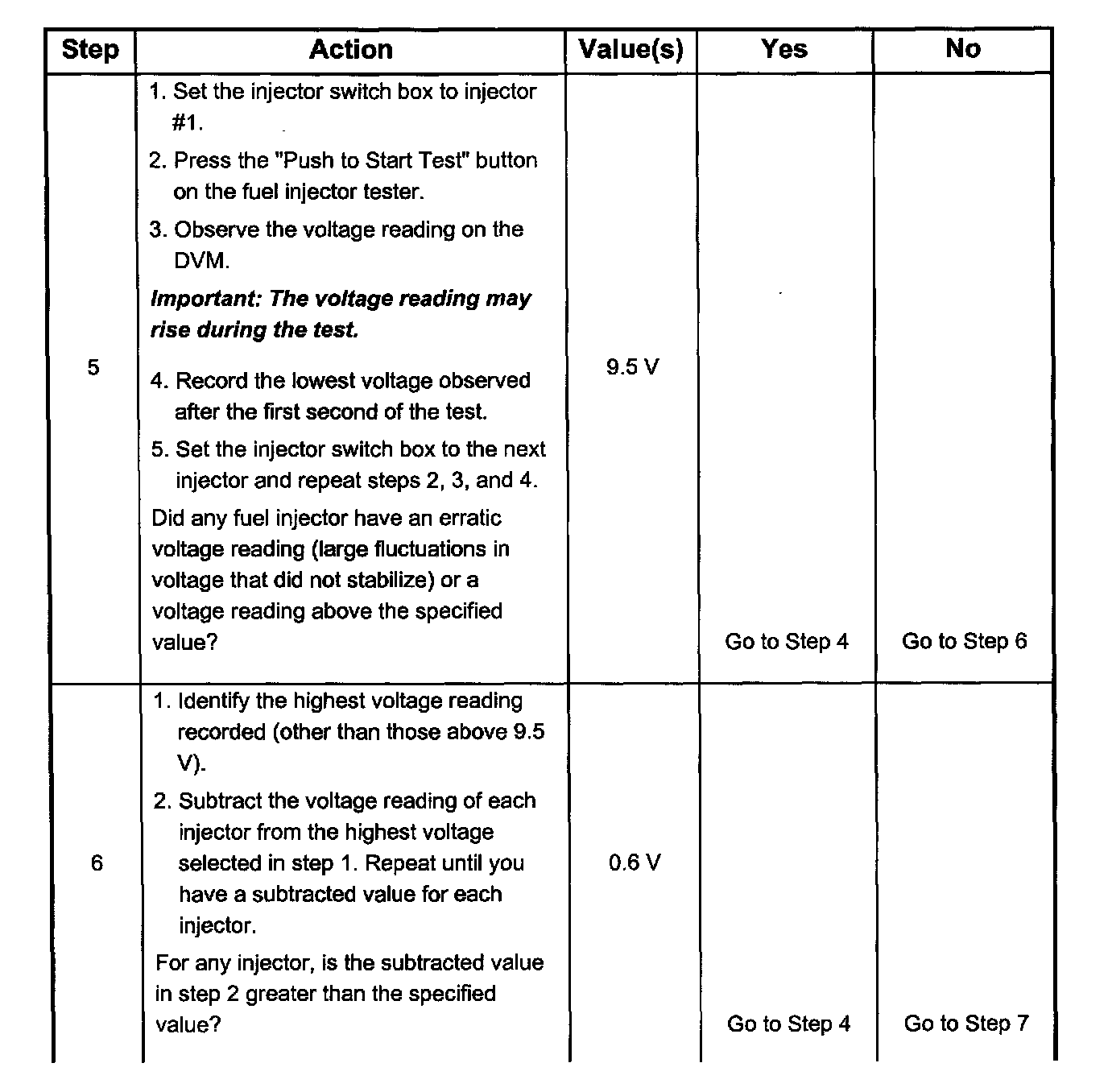 - The voltage displayed by the DVM may increase throughout the test as the fuel injector windings warm and the resistance of the fuel injector windings changes.