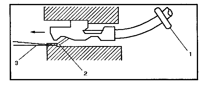 2. Insert the J 35689 tool or equivalent (3) in order to release the terminal locking tang (2).