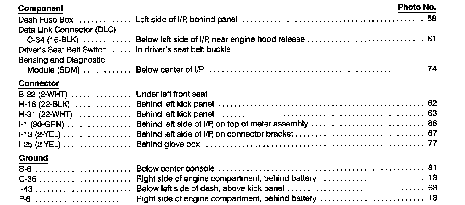 Component Location Index photographs can be found at Component Locations.