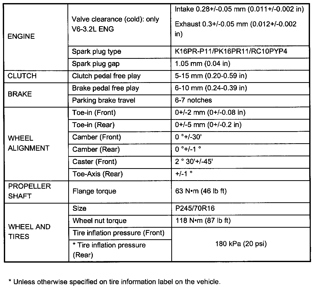 Service Data And Specifications: