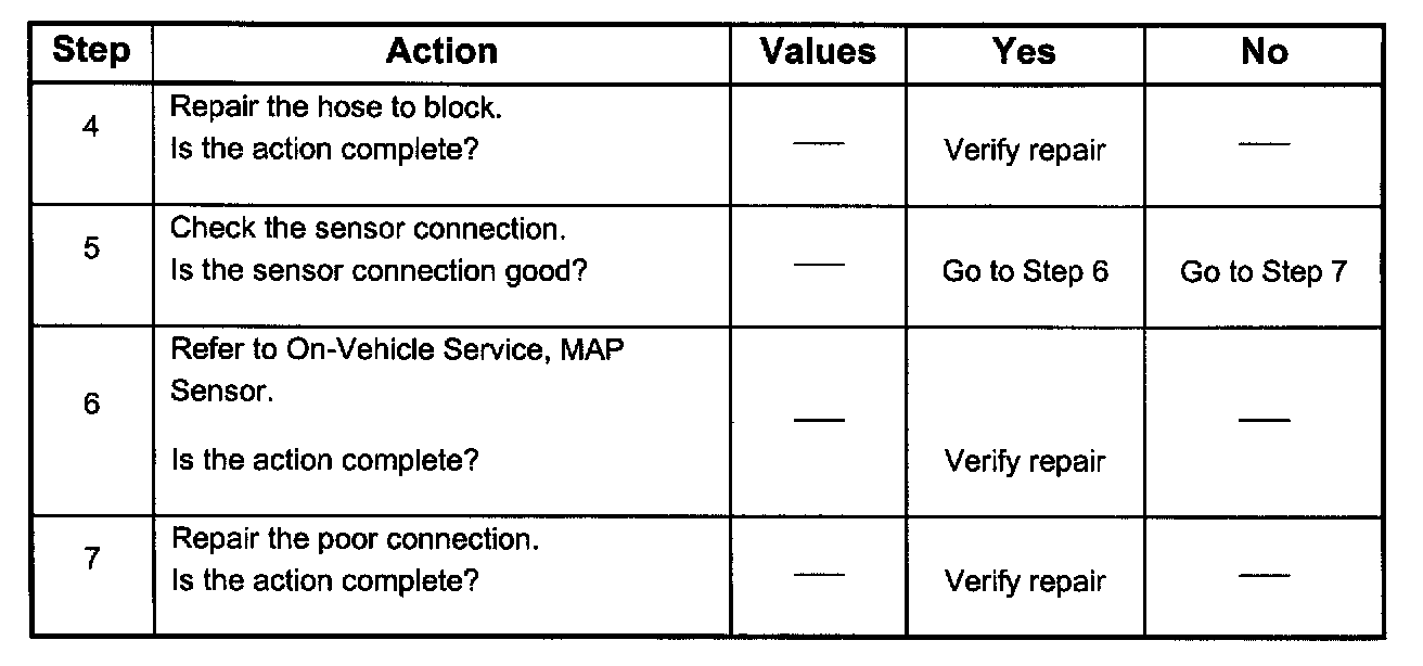 3. Check the vacuum hose to the sensor for leaking or restriction, Be sure that no other vacuum devices are connected to the MAP hose.