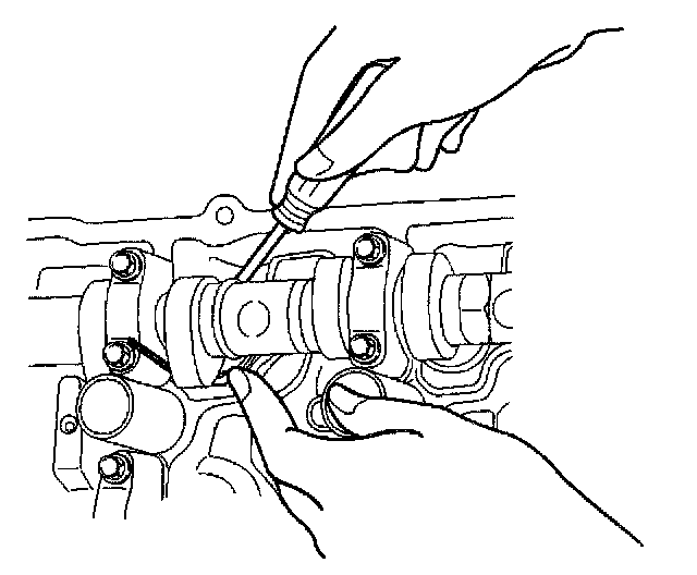 Let the cam push down the edge of tappet by using J-42689 valve clearance adjusting tool and push out the shim with a flat blade screw driver as shown in illustrations.
