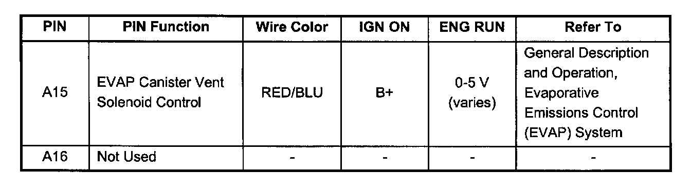 PCM Pinout Table, 32-Pin Red Connector - Row "A" ( Pin A15):