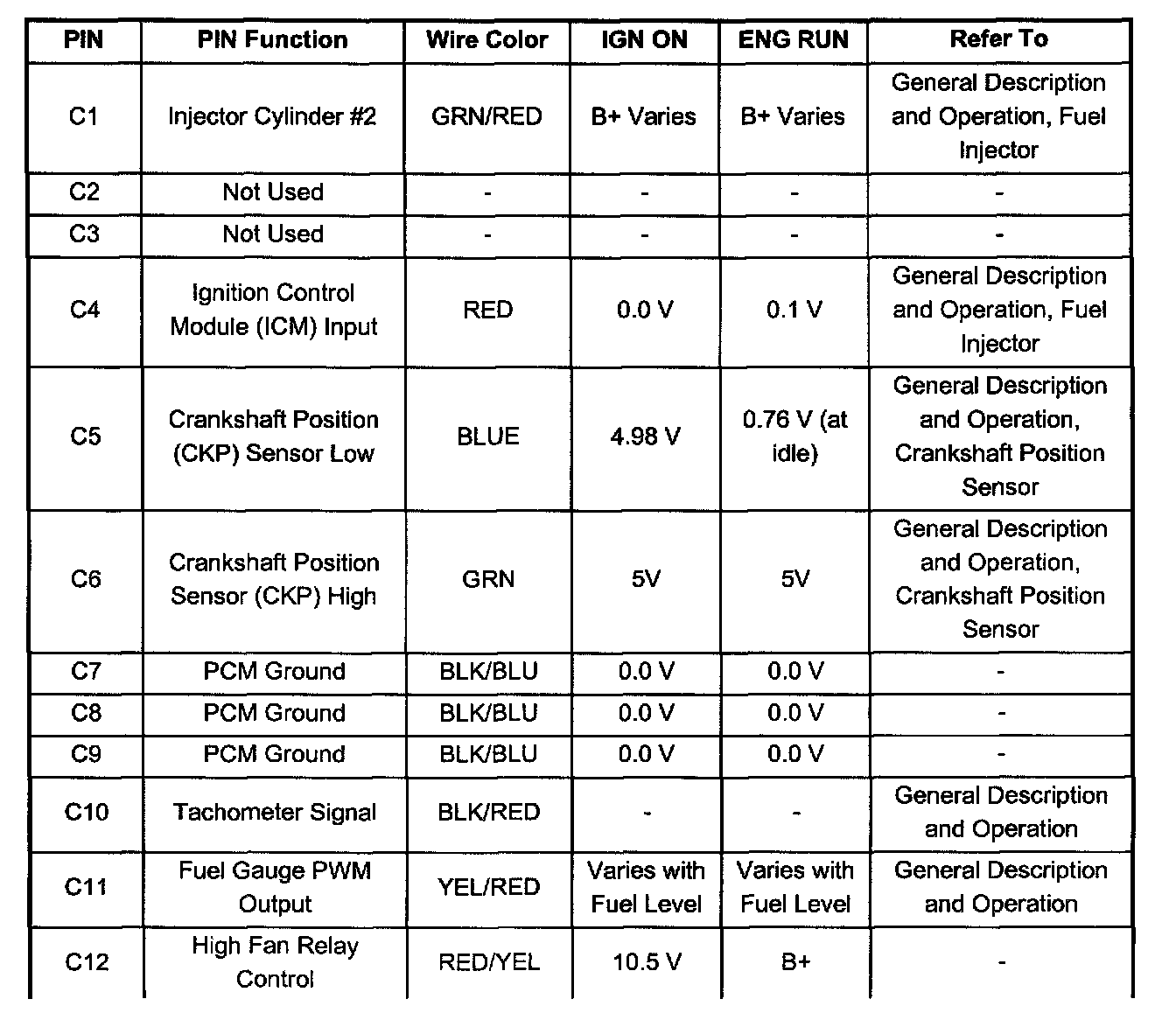 PCM 32 Pin Red Connector - Row "C" - (Pin C1 - C12):