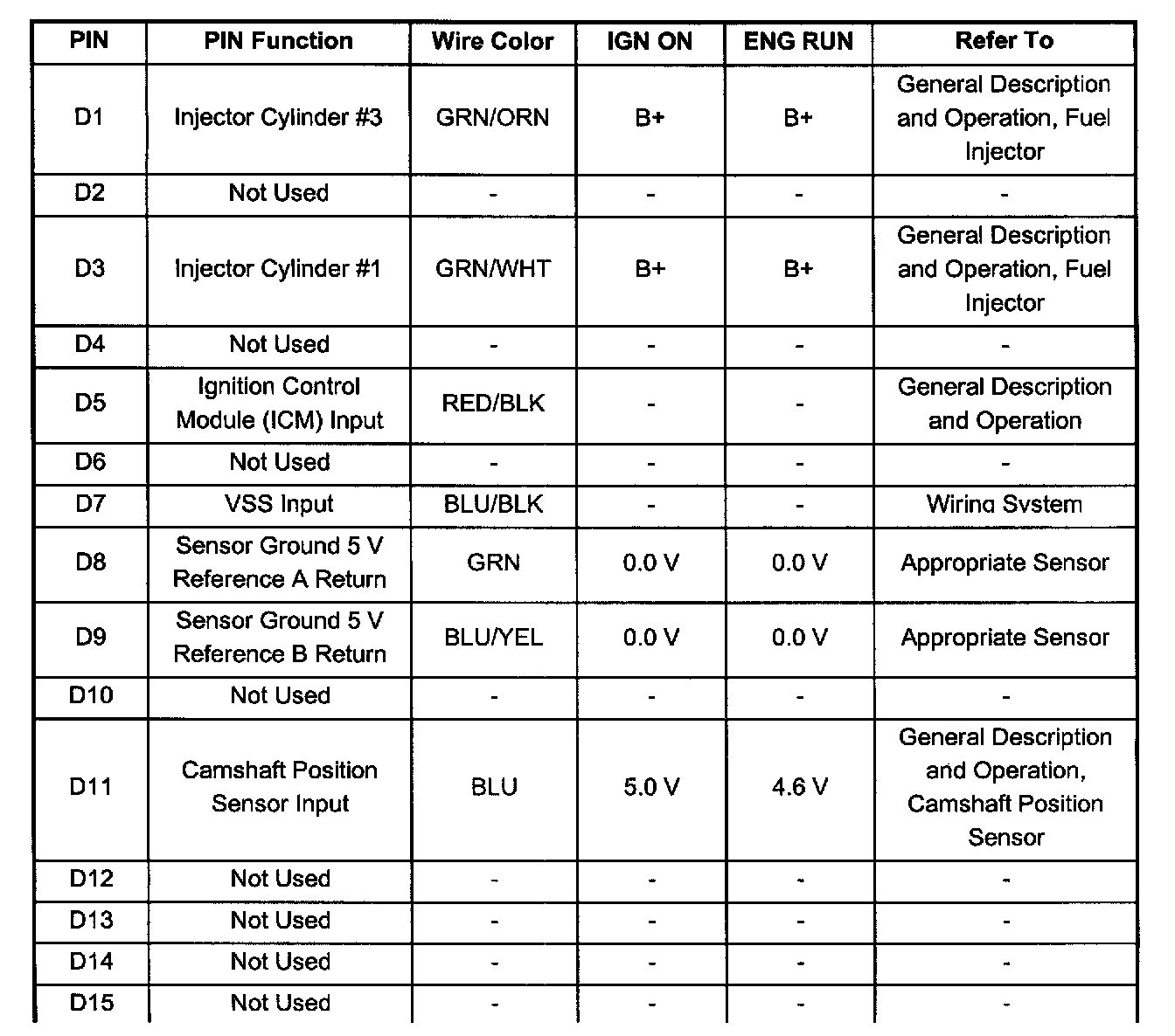 PCM 32 Pin Red Connector - Row "D" (Pin D1 - D15):
