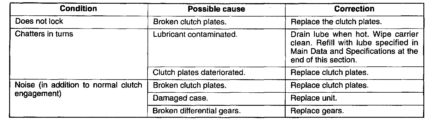 Excessive clunk on acceleration and deceleration can be caused by a worn rear axle pinion shaft, a worn cage, excessive clearance between the axle and the side gear splines, excessive clearance between the side gear hub and the counterbore in the cage, worn pinion and side gear teeth, worn thrust washers, or excessive drive pinion and ring gear backlash. Remove worn parts and replace as required. Select close-fitting parts when possible. Adjust pinion and ring gear backlash.