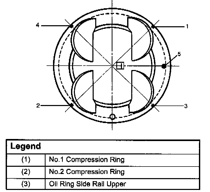 ^ Check to see that the piston ring end gaps are correctly positioned.