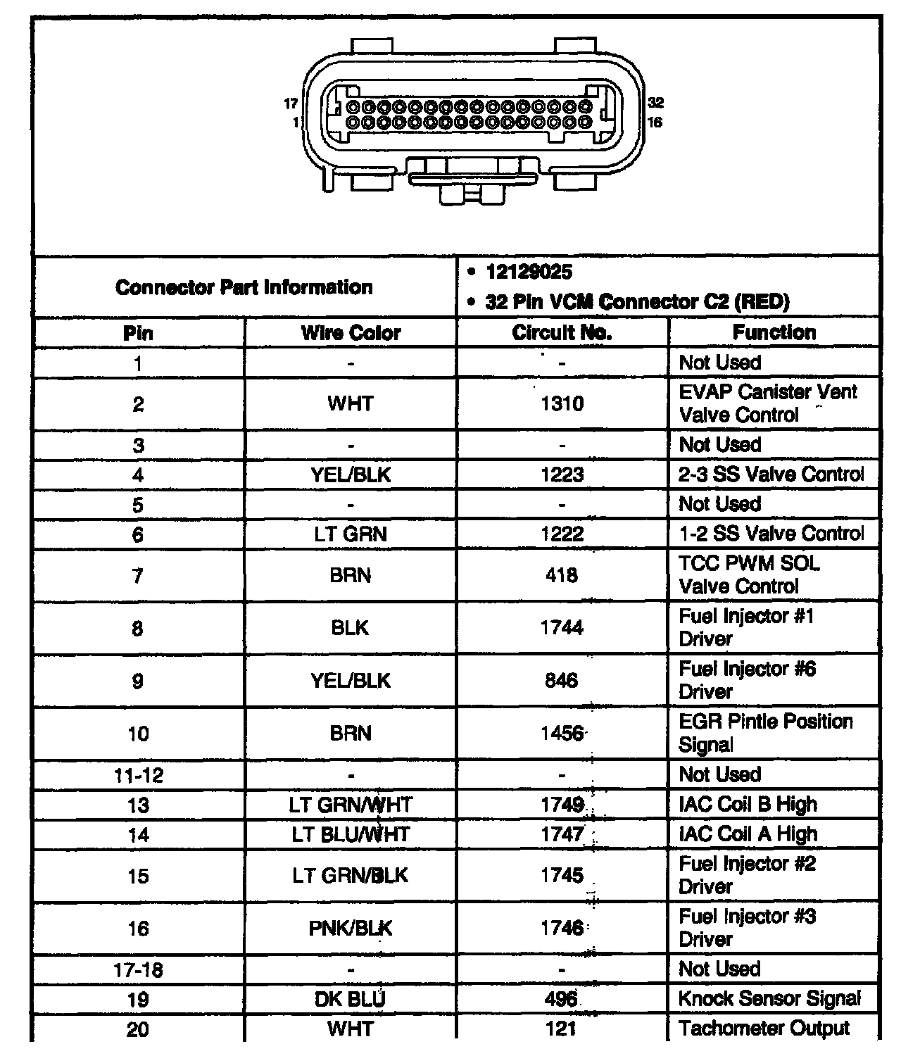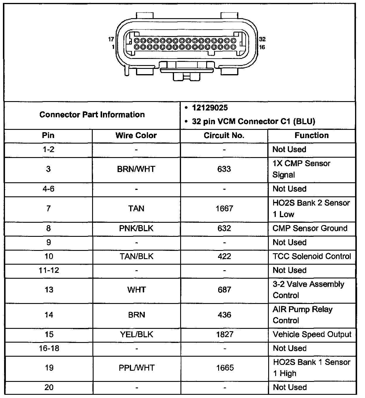 VCM Connector C2 (Pin 1 - 20):