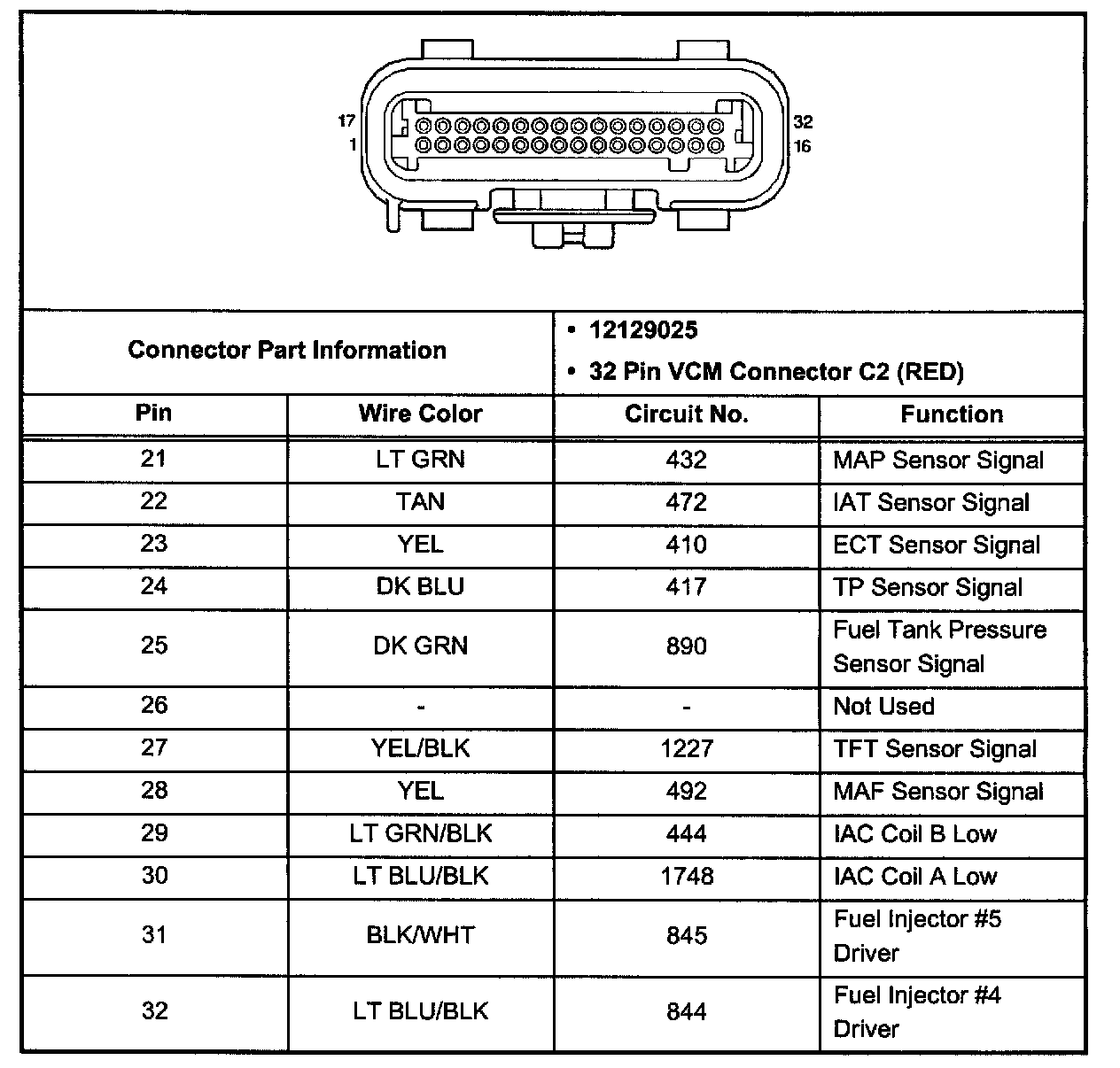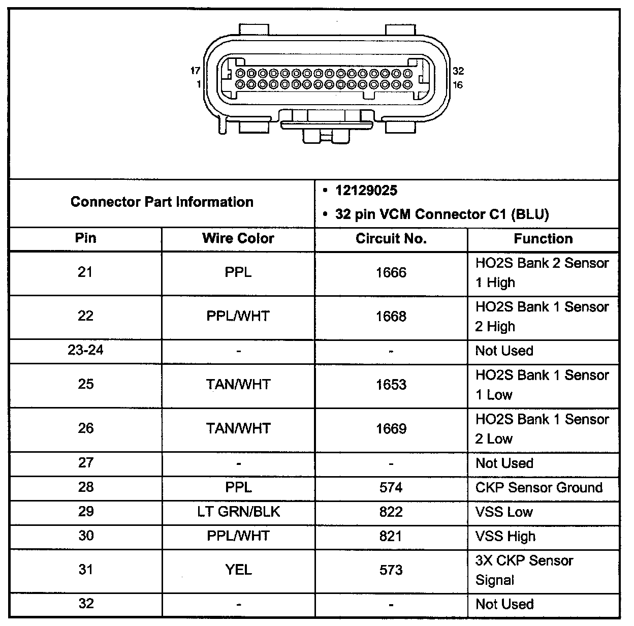 VCM Connector C2 (Pin 21 - 32):