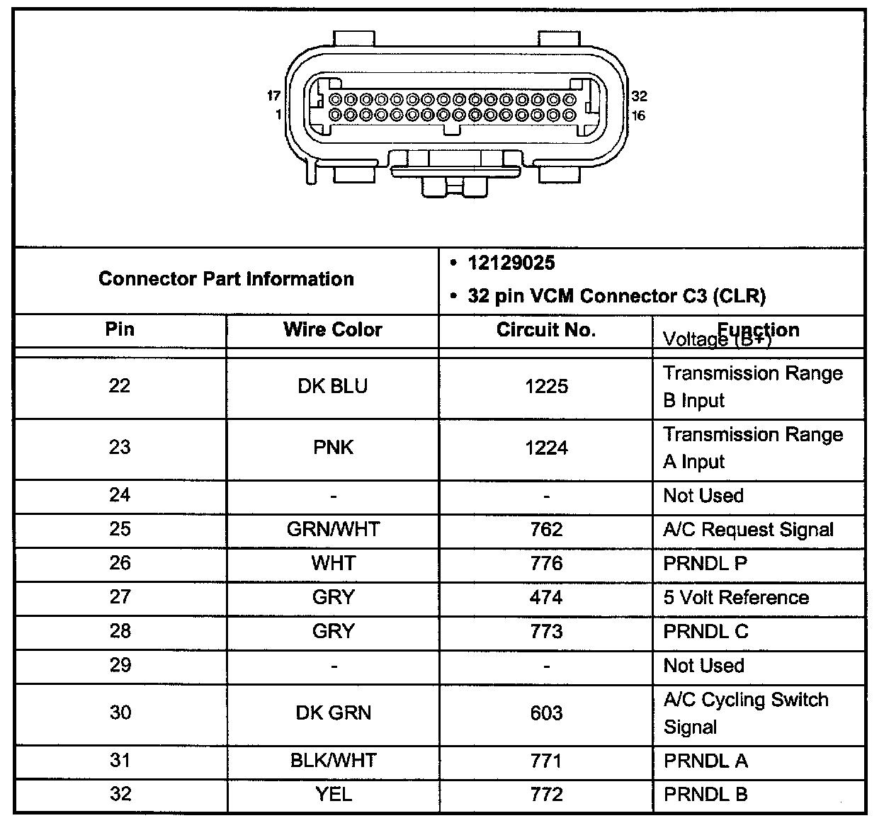 VCM Connector C3 (Pin 22 - 32):