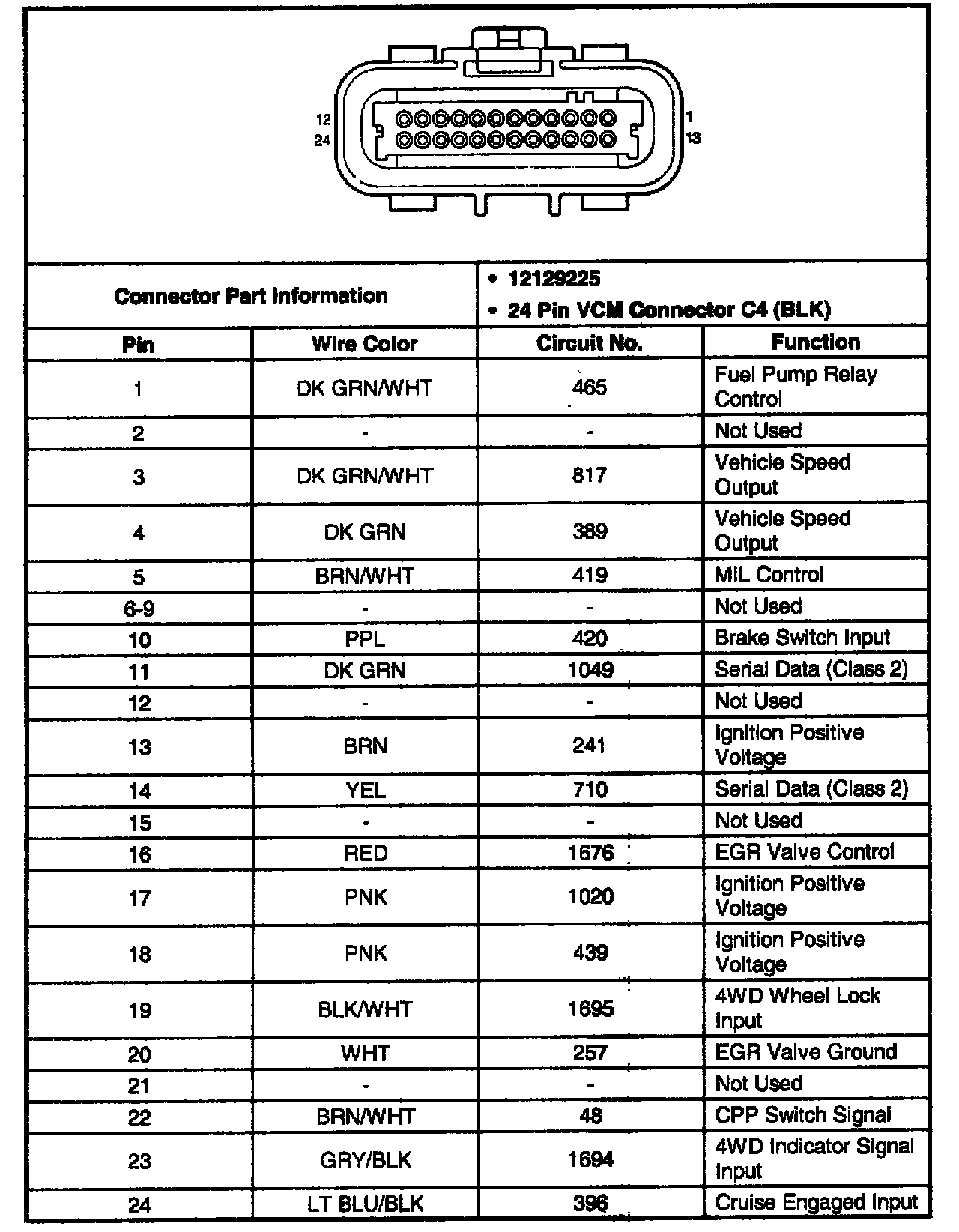 VCM Connector C4 (Pin 1 - 24):