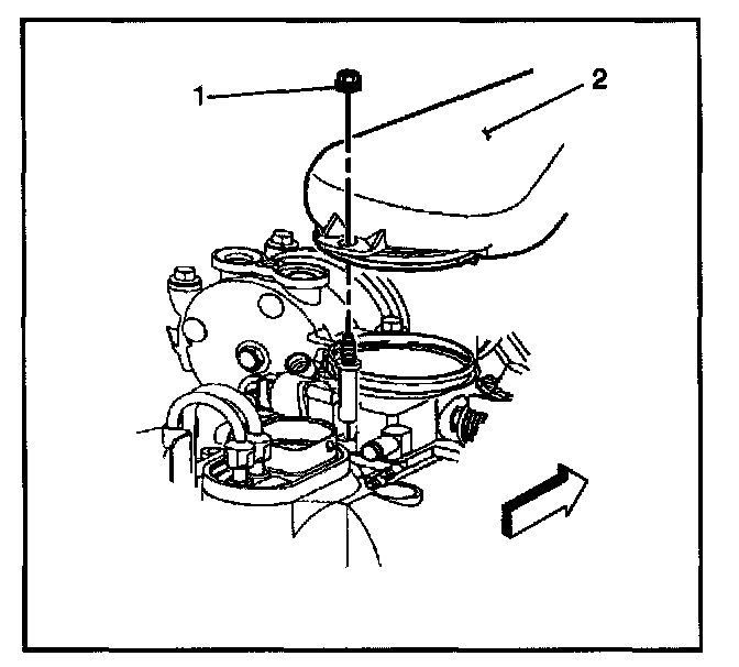 Removal Procedure1. Remove the air cleaner assembly (2) and nut (1).