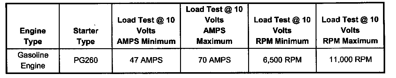 Starter Motor Usage (Load Test @ 10 Volts Specs. PG-260):