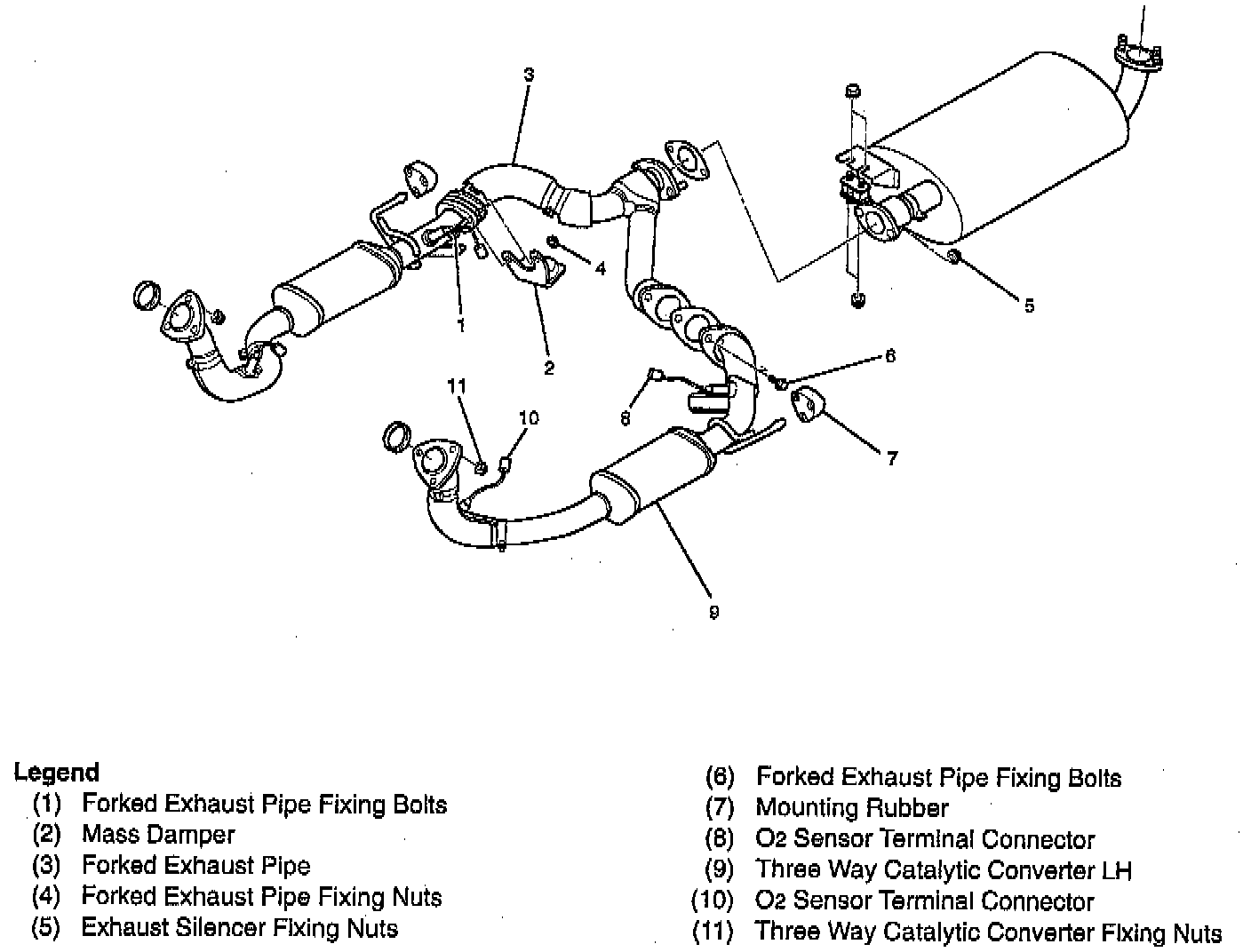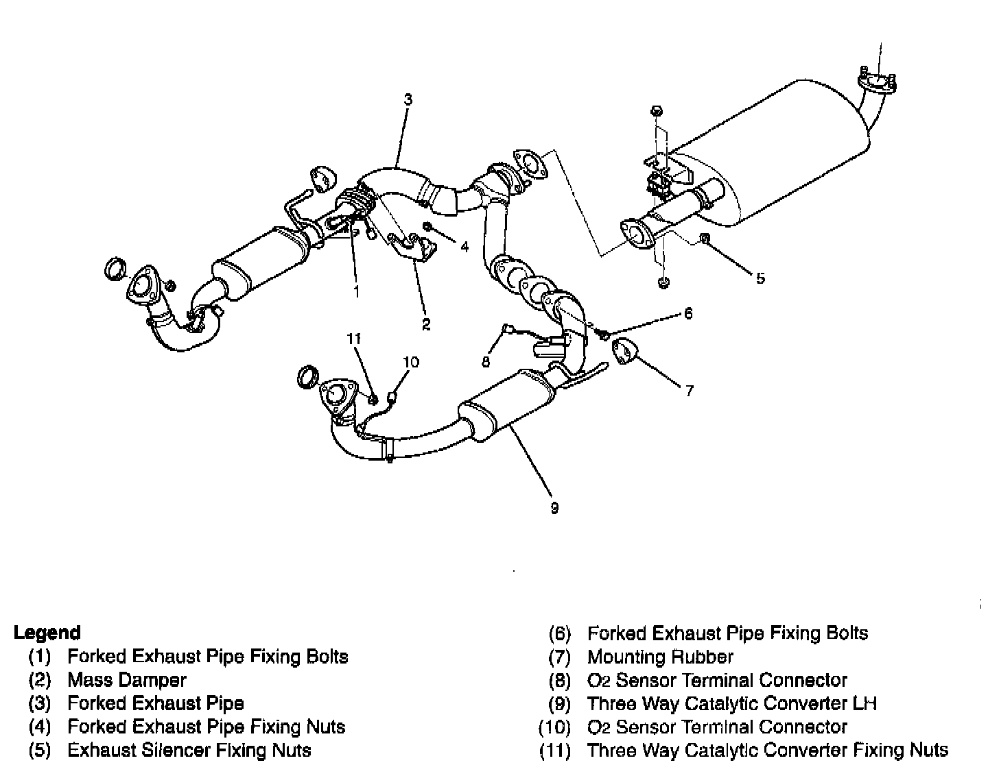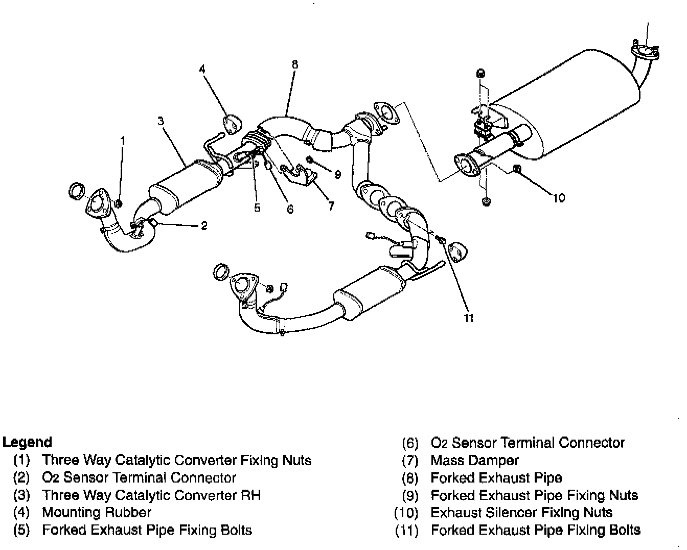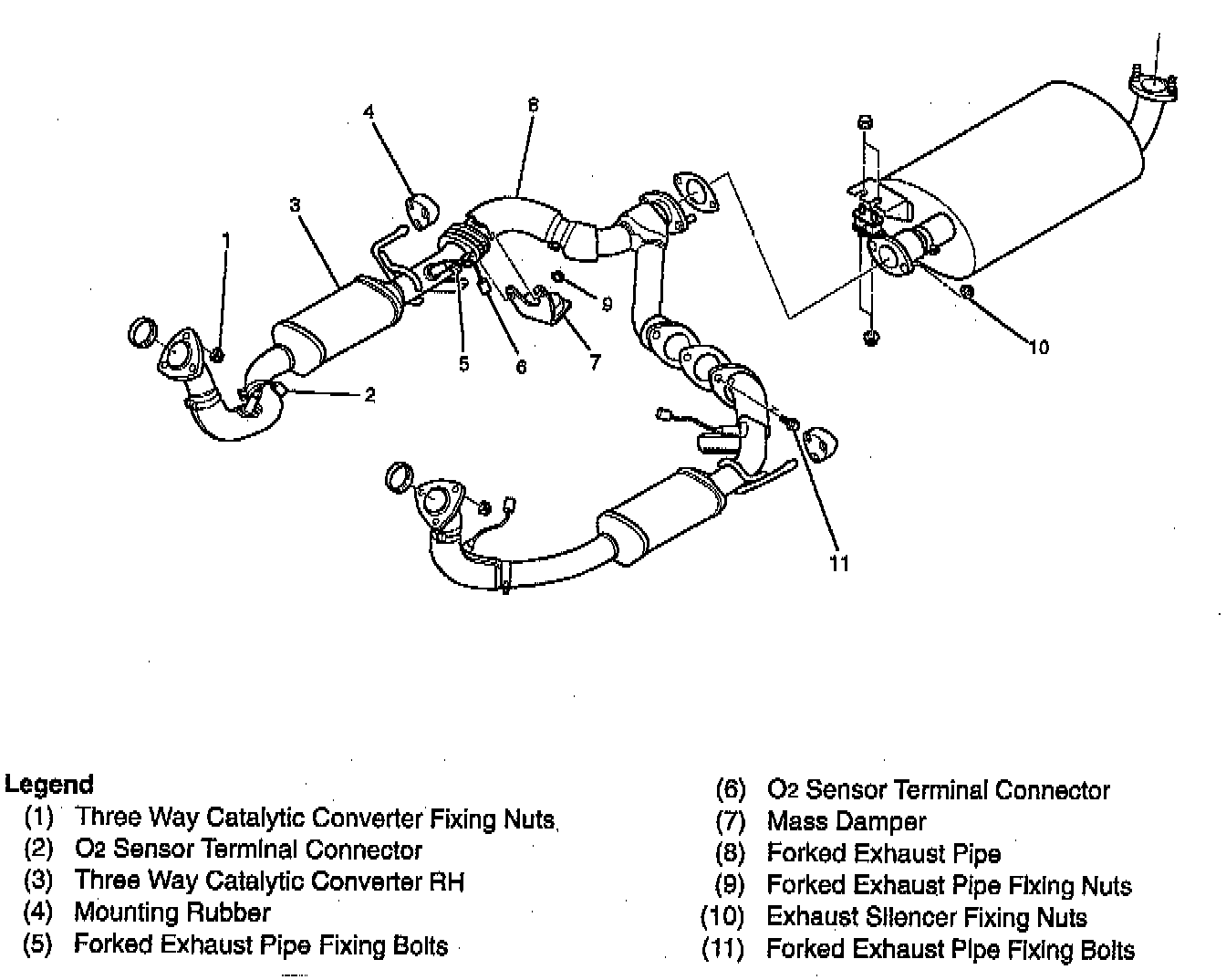 TWC RH and Forked Exhaust Pipe and Associated Parts: