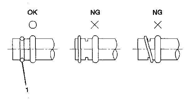 O-ring (2) must be fitted in the groove (1) of refrigerant line.