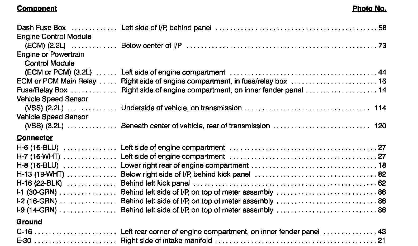 Component Location Index photographs can be found at Component Locations.