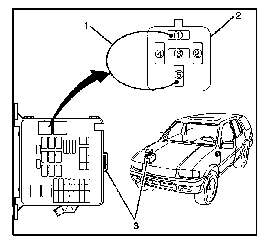 4. Connect the pump relay terminals with a jumper wire (1) as shown and start the fuel pump to measure delivery.