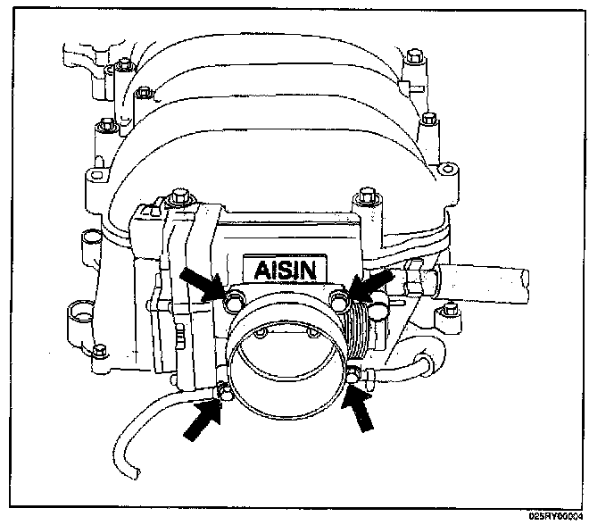 5. The vacuum lines must be properly routed under the throttle body before tightening the mounting bolts.