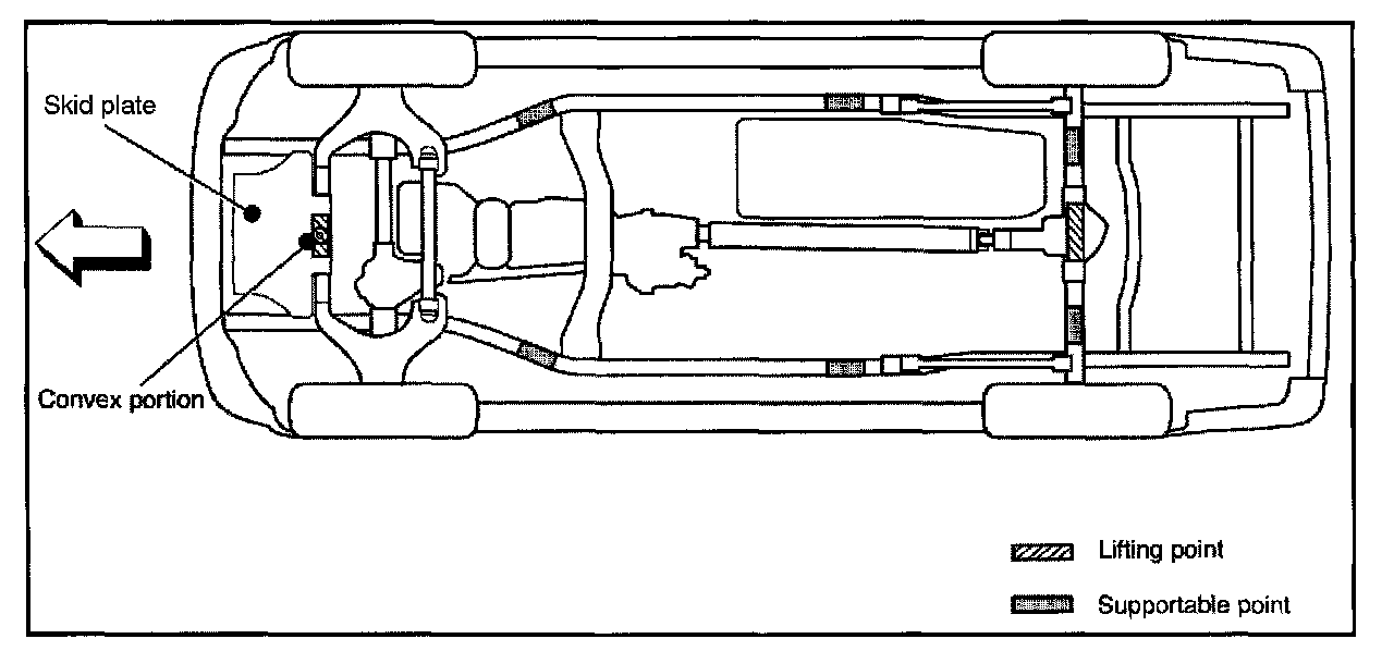 - When jacking or lifting a vehicle at the frame side rail or other prescribed lift points, be certain that lift pads do not contact the catalytic converter, brake pipes or cables, or fuel lines. Such contact may result in damage or unsatisfactory vehicle performance.