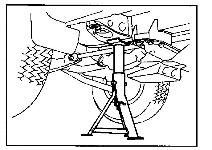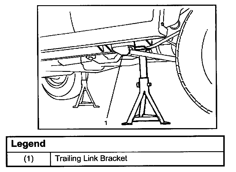 Position the chassis stands at the bottom of the frame sidemember, just behind the trailing link bracket.