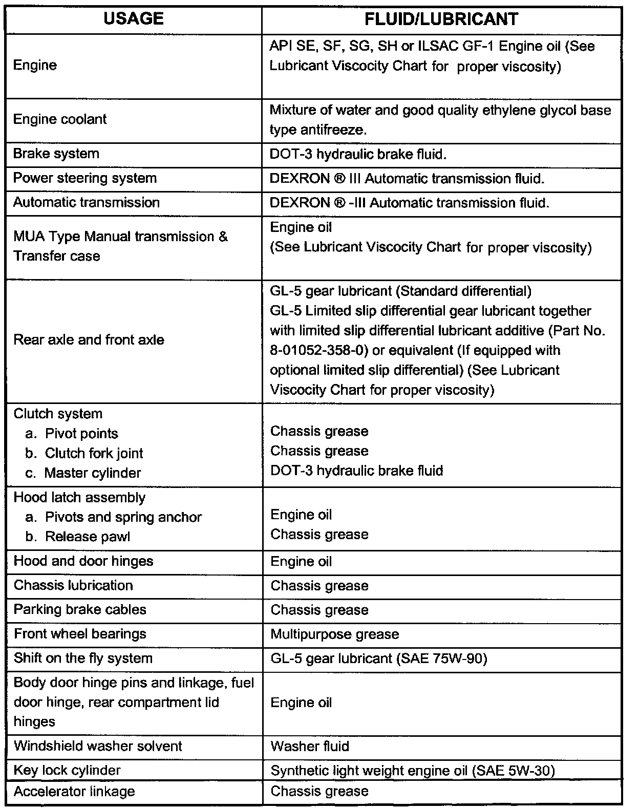 Oil Viscosity Chart For Manual Transmission And Transfer Case (Except T5 Type):