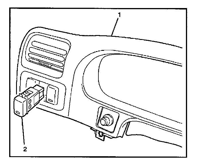3. Remove the rear defogger switch (2).