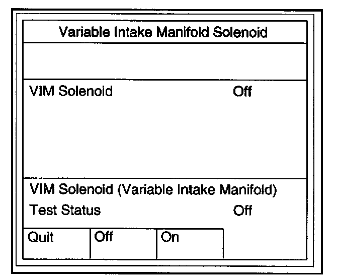 Variable Intake Manifold Solenoid TestThis test is conducted check VIM Solenoid for proper operation.