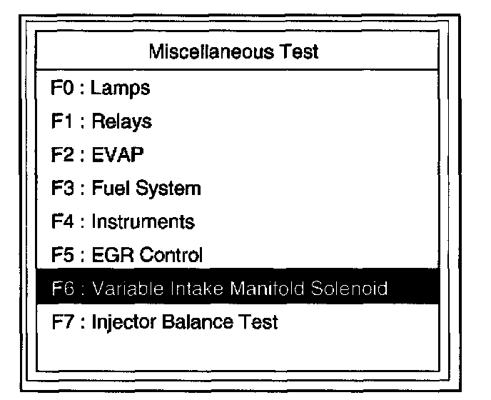 4. Select F6: Variable Intake Manifold Solenoid Test.