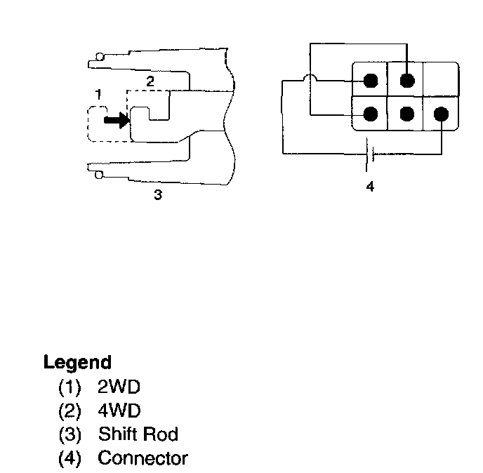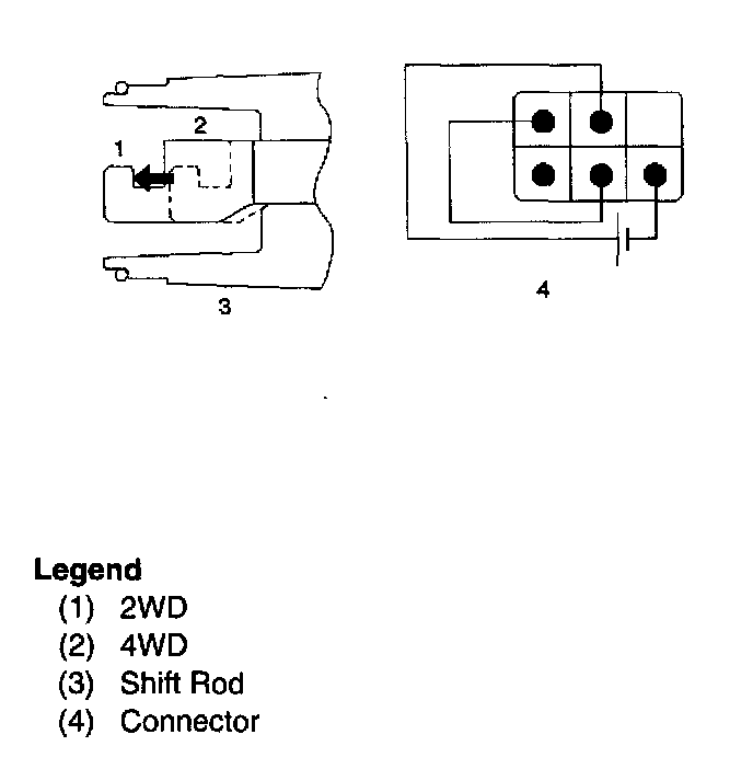 Shift rod of the motor actuator moves and stops at 4WD position.