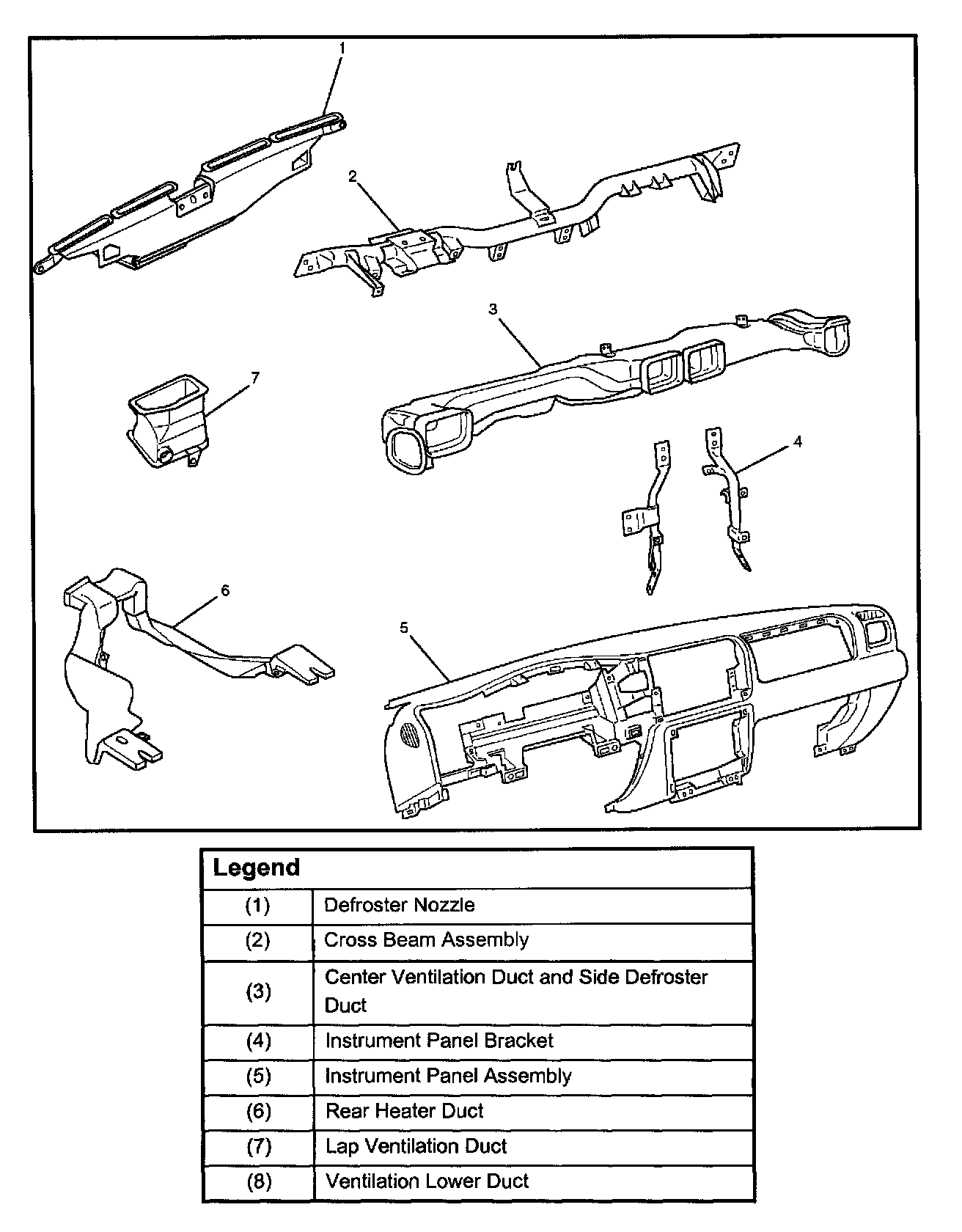 Rear Heater Duct, Defroster Nozzle and Ventilation Duct