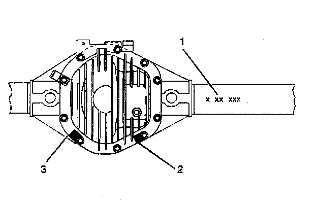 The axle ratio is identified by a tag (3) which is secured by a cover bolt. If the axle has limited-slip differential, it also will be identified with a tag (2) secured by a cover bolt.