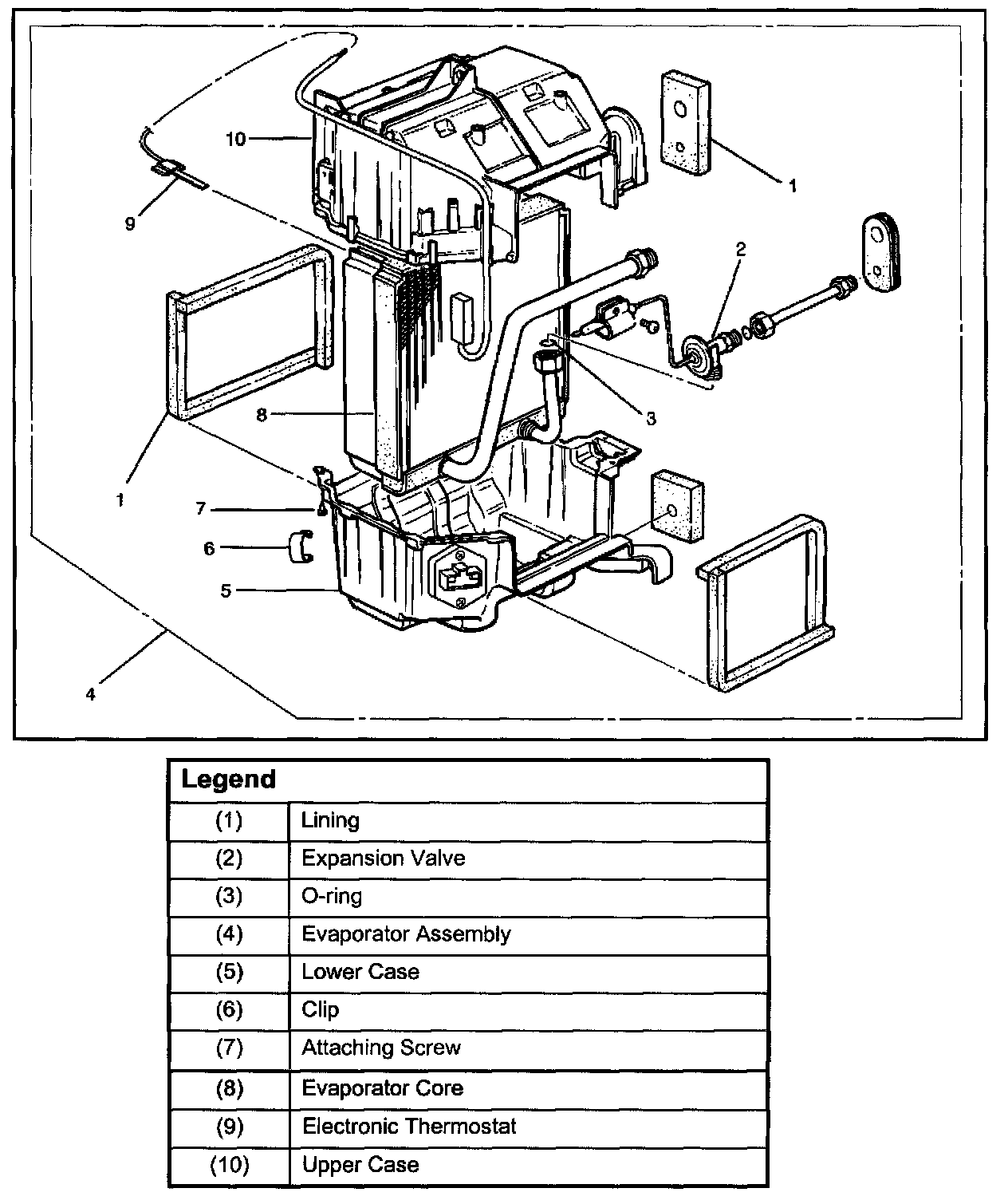 Electronic Thermostat, Evaporator Core and/or Expansion ValveDisassembled View: