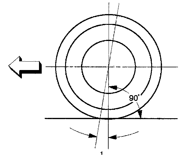 Camber is the vertical tilting inward or outward of the front wheels. When the wheels tilt outward at the top, the camber is positive (+). When the wheels tilt inward at the top, the camber is negative (-). The amount of tilt measured in degrees from the vertical is called the camber angle (1). If camber is extreme or unequal between the wheels, improper steering and excessive tire wear will result. Negative camber causes wear on the inside of the tire, while positive camber causes wear to the outside.