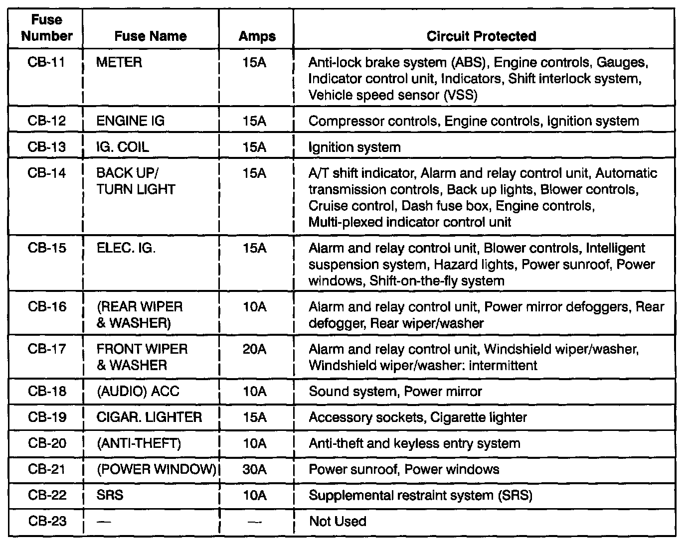 Dash Fuse Box - Fuse Identification (2 Of 3):